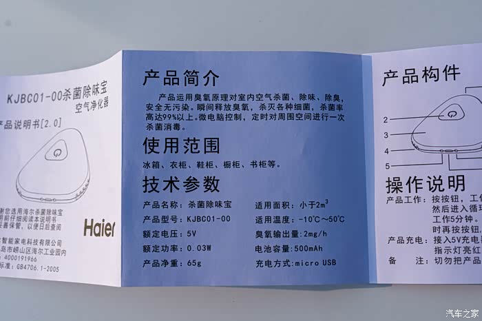 除了在车内使用以外也可适用很多其他地方如:衣柜、鞋柜、冰箱、橱柜、卫生间等。功能方面,有一键清新杀菌模式,充满一次电可工作7天。