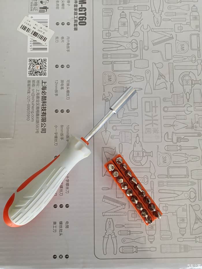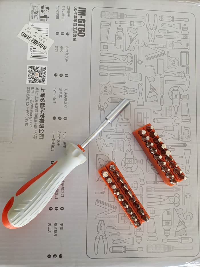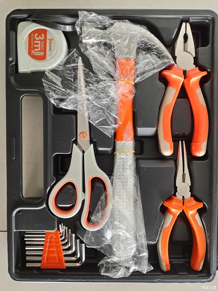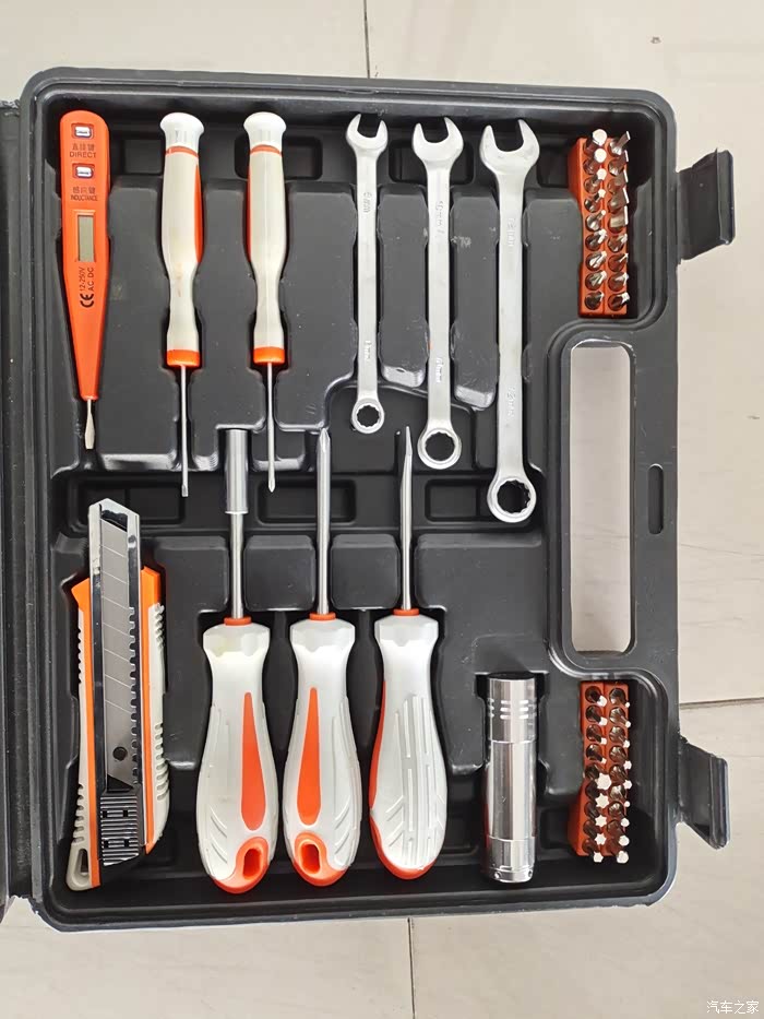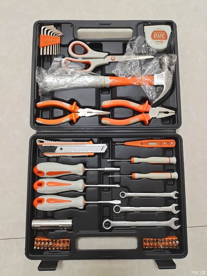 这款车家两用工具箱60件套,东西比较多,给日常生活中动手带来很大的便利工具,也便于携带,摆放,不会占用太大空间,一般使用够用了,如果在加上棘轮扳手,套筒啥的就更好了,总体来说还可以,像橘色包裹件有泛黄,可能是工艺问题,希望产品越做越好,家家众测越来越好,大家可以才商城上面搜索找到!