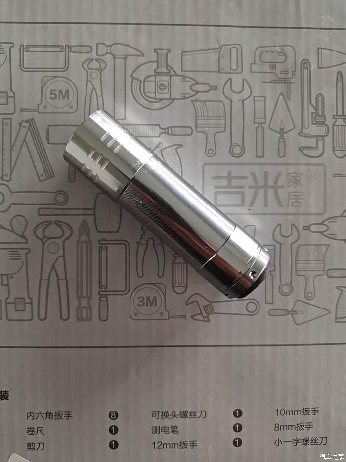 电笔,小号螺丝刀,大号螺丝刀,3种规格扳手,美工刀,手电筒,换头螺丝刀,螺丝批头。