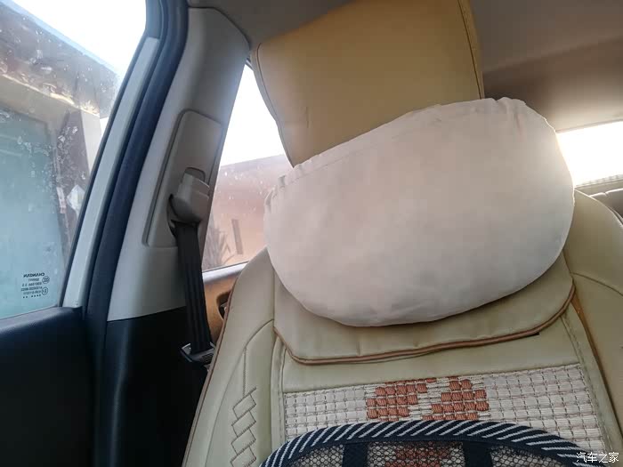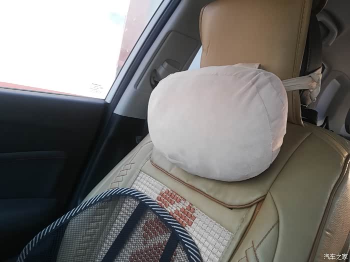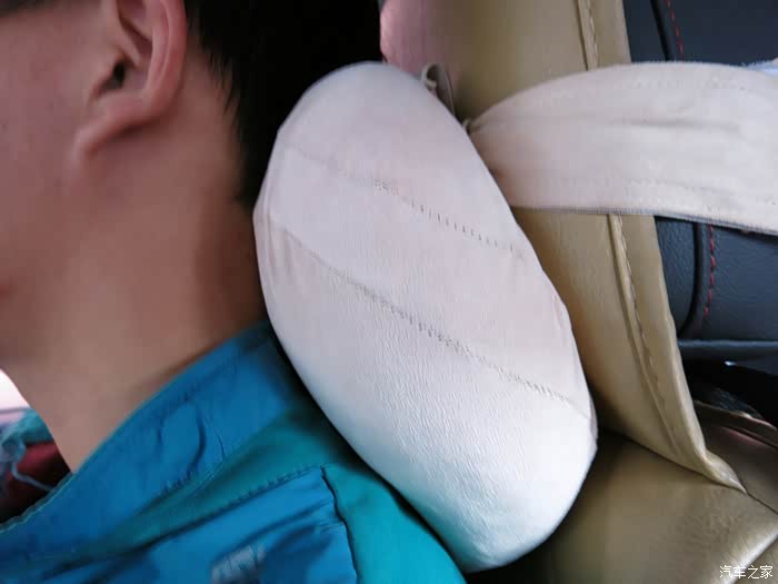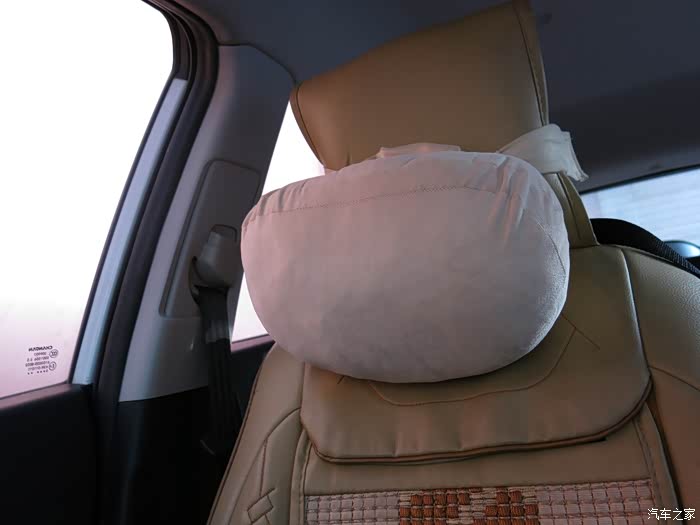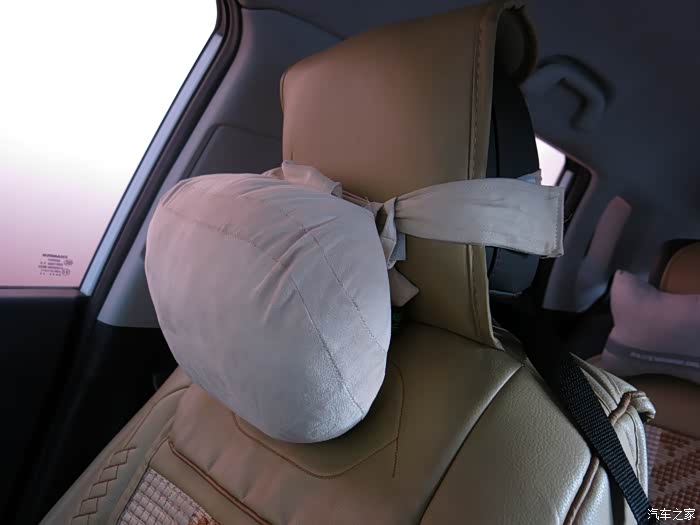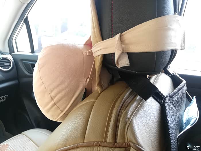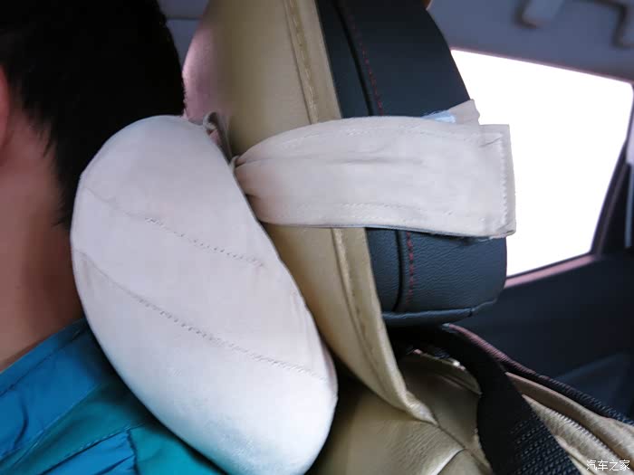 布料与车厢颜色搭配无间, 绑在原装头枕的位置也比较准确,毫无突兀的不和谐感。