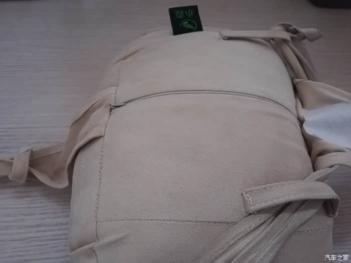这款辅助头枕,参照迈巴赫轿车的后座头枕而设计,绒面材料包裹蓬松柔软的超纤维内胆,虽然面料是绒布,但其触感却更像翻毛皮革,整体质感还是相当不错的。