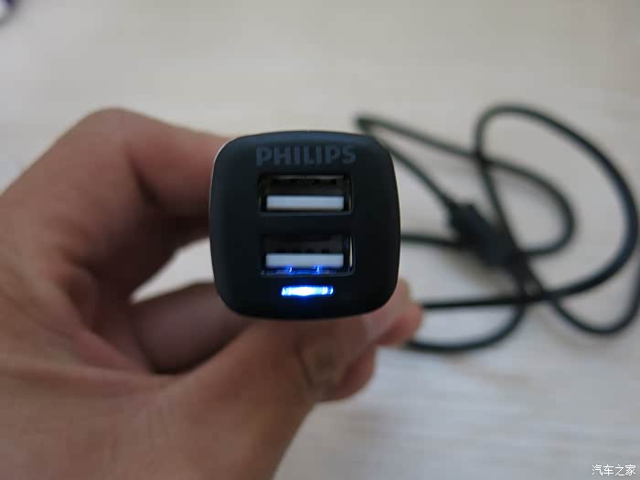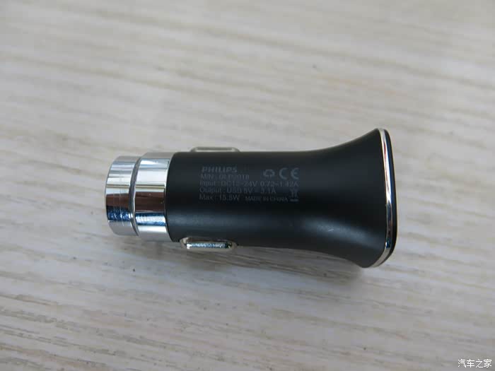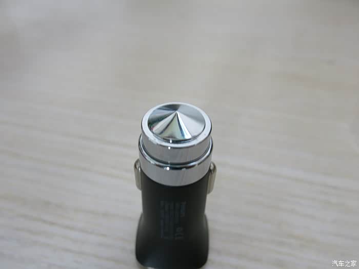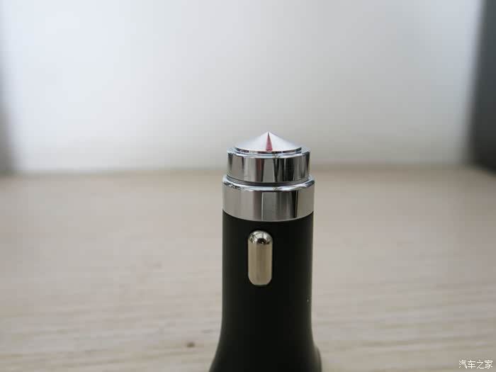 飞利浦的机身使用的是ABS+PC防火塑胶,表面经过磨砂处理后也有质感,在车充的前端,飞利浦DLP2018采用的是高硬度钢尖设计,所以它还能扮演安全锤的角色,但用这么小的一个东西砸碎车窗也不太容易,聊胜于无吧!飞利浦DLP2018指示灯位于USB口的下方,属于很常见的设计。