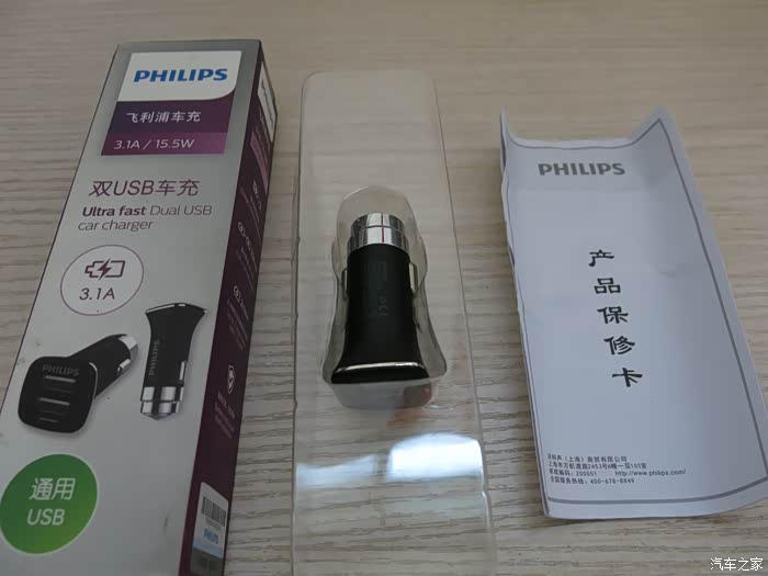 包装内含车充、保修卡和合格证。
