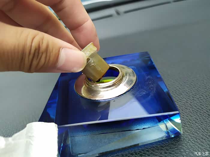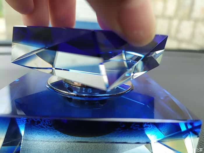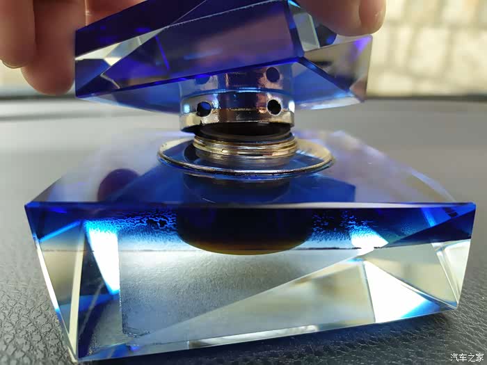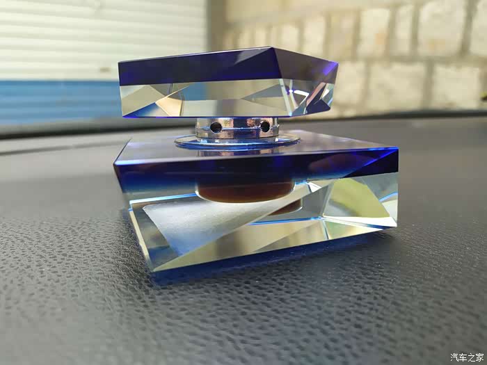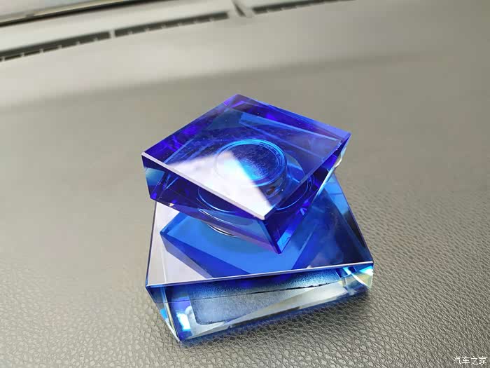 不过先说说我这款车载香水吧,蓝色半透明四边形玻璃外形,晶莹剔透很有美感与艺术感,至少我这么觉得,这款车载香水瓶,明显的两大功能:1.内饰装饰;2.当然就是容纳香水啦。