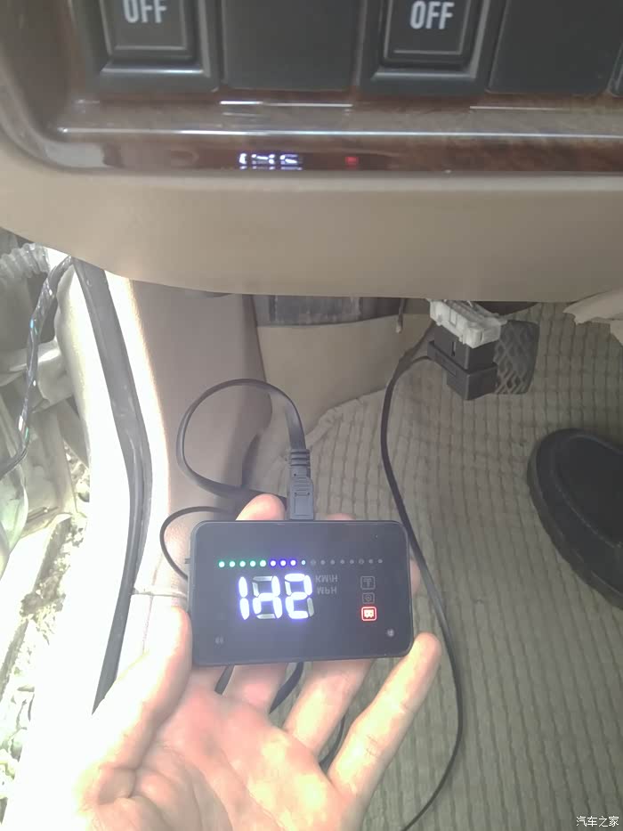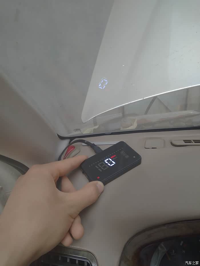 下面来到车内、我在仪表盘下方找到了OBD接口,连接好抬头显示器后通电进行测试中......