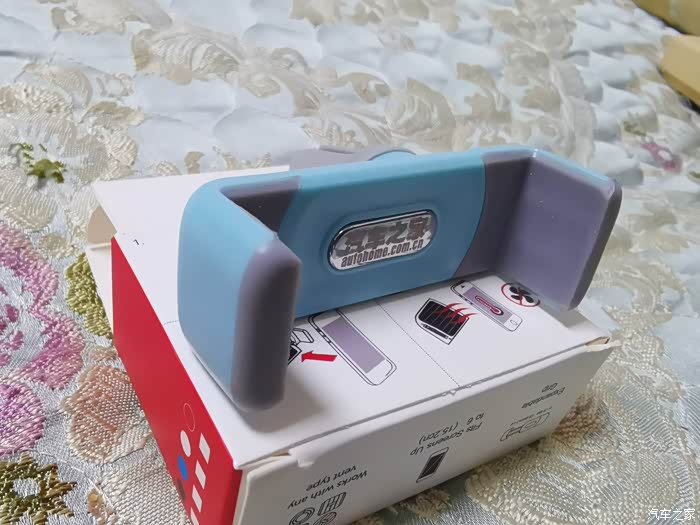 这款手机支架上有镀刻的汽车之家的LOGO,配色为蓝灰搭配,总体颜值是很好的。这款车载支架是固定在空调出风口的。接触固定的为十字软塑料。可以有效的保护不划伤出风口塑料。总体上这款支架小巧轻盈,安装方便,也占据车内的空间,比较适合日常开车使用。质量稳定,弹簧的拉立还是比较紧的。如容易出现摇摆的情况。推荐这个开车必备件。