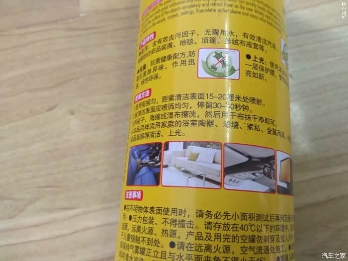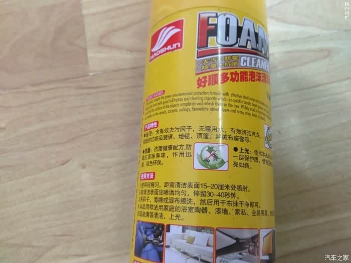 泡沫清洗剂使用效果:1、车内顶篷是个比较特殊的地方,基本不会沾上其它污物,但是制作顶篷的材料比较特殊,它具有吸附性,所以说,车内顶篷的污染多为烟雾粉尘和头部油脂。但是使用泡沫清洗剂清洁是一件很简单的事情,只要将泡沫清洗剂喷到污染脏处,稍等片刻用干净的布将泡沫擦干净就可以,并且会留下芳香。2、泡沫清洗剂也是家居必备的清洁帮手,房屋的大部分物品都可以使用到,比如说电器外壳、浴室设备、胶板、乳胶漆墙面、陶瓷制品、地毯、丝绒与纺织纤维、金属与沙发等家私的清洁,不会腐蚀物品表面,使其褪色等;具有良好的除菌和消臭效果,使用后留下怡人芬芳,使用起来也是方便快捷的,大家只要一喷一抹,泡沫清洗剂的超强泡沫就会带走物品表面遗留的顽固污渍。3、泡沫清洗剂的能有效的清除番茄酱等酱类食品、咖啡、可乐、冰淇淋等污染了座椅或地毯的污迹,可先用冷水浸湿的抹布擦拭,或用海绵轻轻擦除,再用泡沫清洗剂,千万不能用肥皂或热水来清洗,因为肥皂和热水会将痕迹固定在座椅表面。