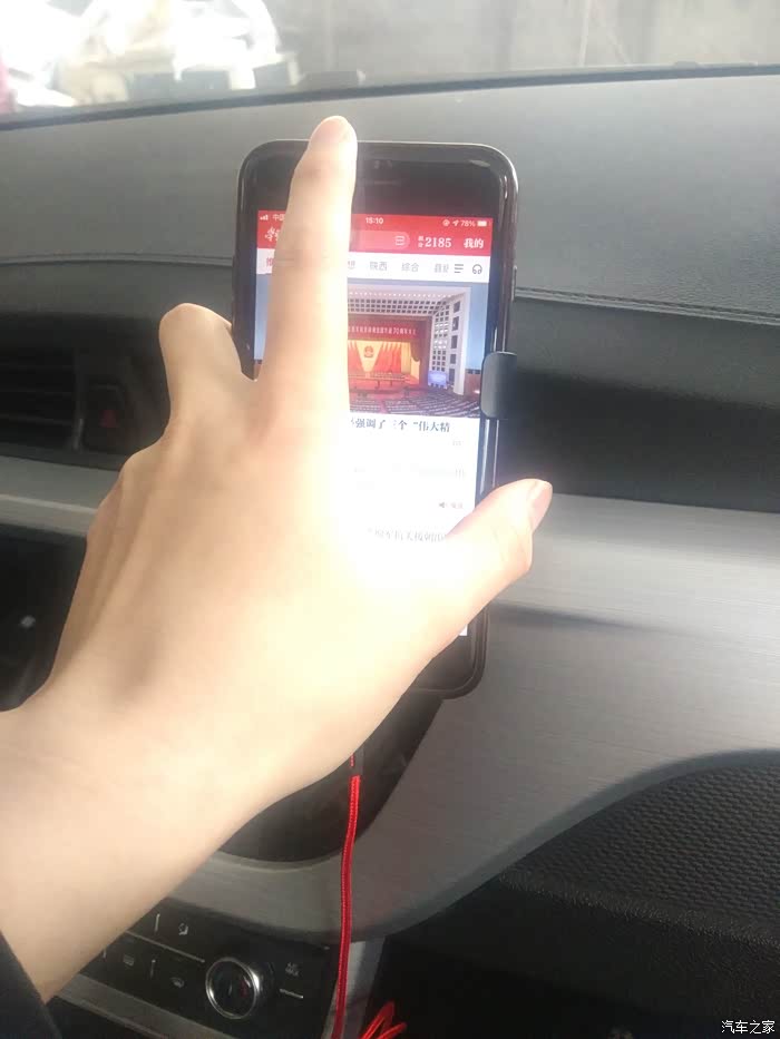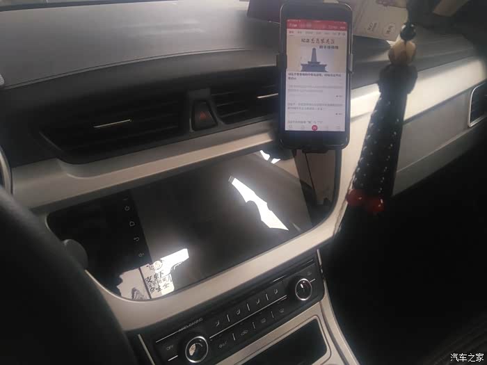 可以看到,手机放到飞利浦(PHILIPS)重力型车载手机支架上以后,在主驾看来,并不会遮挡车机显示屏的内容。这一点很重要。