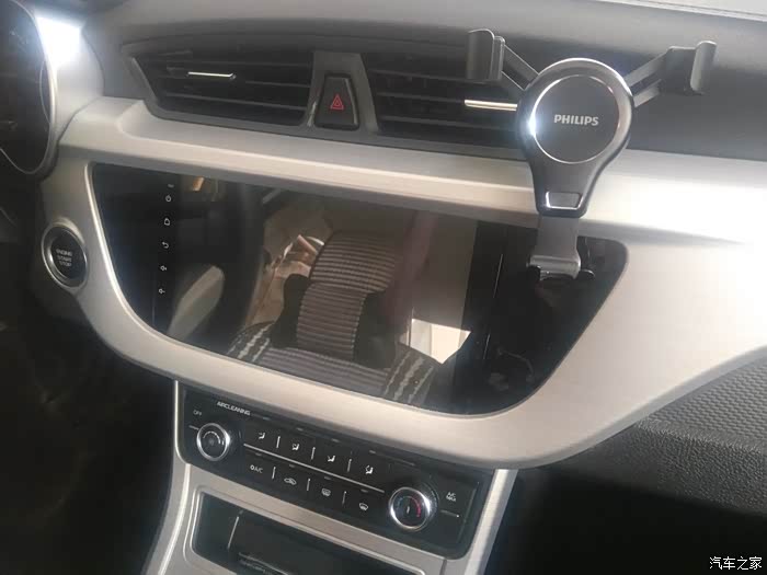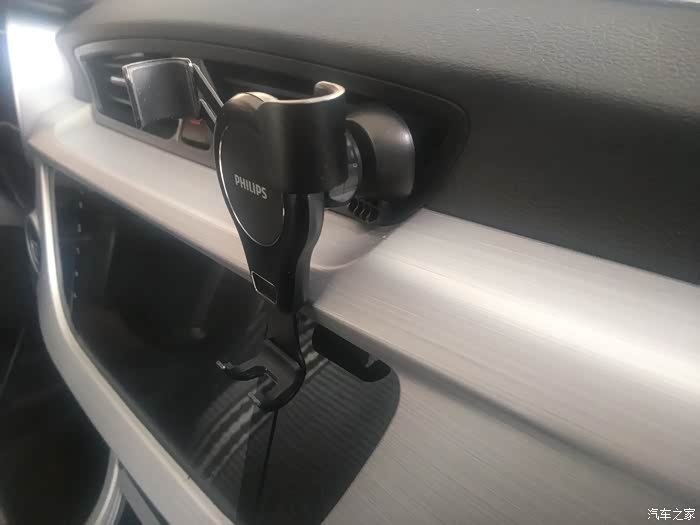 可以看到,本远景车的出风口下边在装车机的地方吐出来了好长一截,不利于飞利浦(PHILIPS)重力型车载手机支架的安装,呃,可以说是不利于车载手机支架的安装,我不是在针对哪一款车载手机支架,我说的是全部!