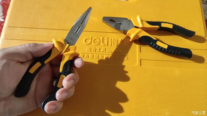 得力工具组合套装编号3703,所有工具全部使用高强度碳钢打造,每件工具的手柄部分采用防滑硅胶制造。具有强度高,耐久性好,美观大方,使用安全的特点,接下来我们就仔细的看一下每件工具的细节吧。