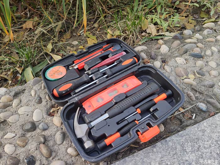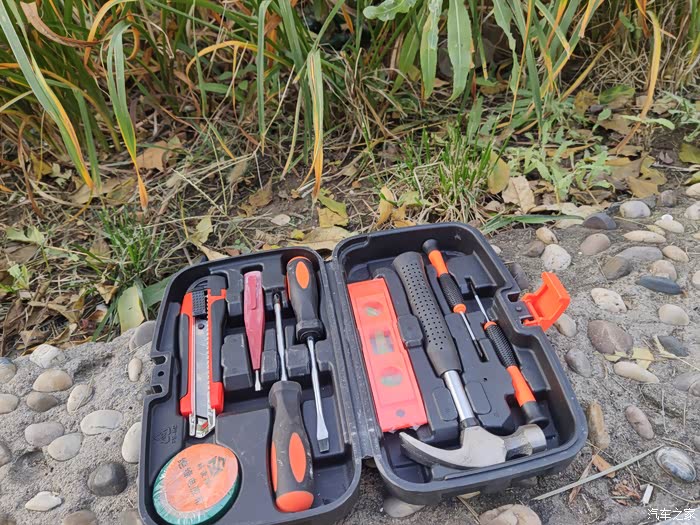 今天,我要评测的是一套车载简易工具箱,包括工具箱一个,电工包布一卷、电工刀子一把,试电笔一把,大十字螺丝刀、大一字螺丝刀一把,水平尺一把、羊角锤一把,小一字、十字各一把,共八件工具,您可别小瞧这八件工具,缺了一个有时都玩不转。
