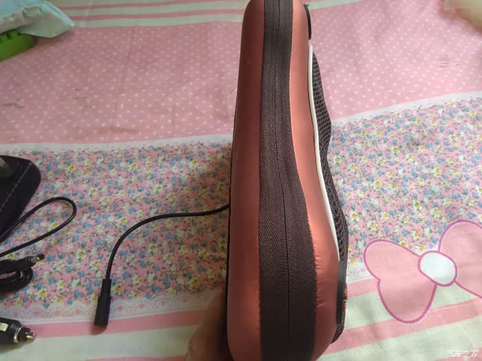 另外还有一个小缺点,想指出来,就是适配的电源线,尤其是车载电源线,长度有点短了,放在头枕位置,连接线不能很好的隐藏,基本是直溜溜的联通点烟器,这点的话可以通过照片能够反应出来,就这点儿来说,真的没有办法给好评,但是实际使用的按摩效果体验是非常棒的,无论是按摩颈椎,还是按摩腿,还是按摩腰,都是非常的舒服,算是没有给车选装座椅按摩,有一点点小小的遗憾吧,有了按摩颈椎的这个头枕,真的是不错的选择,在开车途中按着摩非常的舒服,缓解颈椎的疲劳!