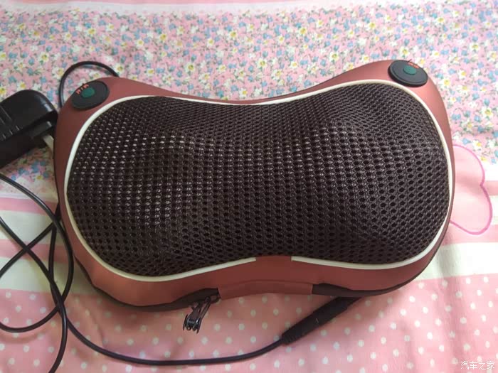 这次评测的是一个车载和家庭两用的按摩枕,非常的实用,可以按摩颈椎,按摩腿,按摩腰等等部位,都是不错的使用体验,挺舒服的,能够有效的缓解疲劳,并且非常贴心的搭配了两种供电方式,一种是连接车载点烟器,12V电源的接口,一种是家用220V电源的接口,可以随着使用场景的变化,随机应变,非常的灵活,很实用,有一点值得说明一下,在家家众测页面介绍的可以按第一下启动热敷和揉捏,并且60秒自动切换正反转,按第二下启动热敷和推拿,并且60秒自动切换正反转,按第三下关闭热敷正常启动推拿揉捏,按第四下关闭机器。