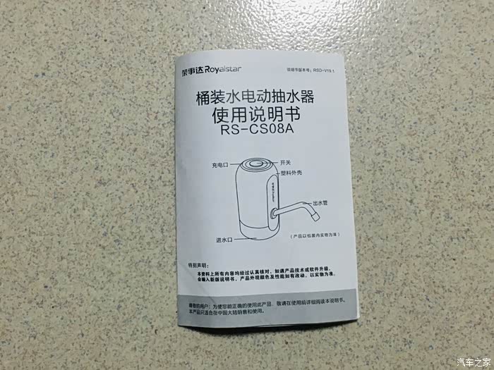 大家好,今天为大家带来的是一款由荣事达出品的小型充电抽水器,这款自动抽水泵大小水桶都可以用,一键出水操作简单大人小孩子都会用,携带也非常方便,周末或假期开车出去带上一桶18.9L的水桶和这个小型抽水管非常实用,加长的不锈钢出水管,防漏水设计严丝合缝,出水时噪声非常小,家里用,公司用,自驾游用都是非常不错的,USB电源充电像手机一样简单,也可以用充电宝充电供电,产品高13.3CM,直径6.2CM,配有硅胶软管一根,充电线一根。好了,我们一起来看看这款小家电的细节做的如何,我会以18.9L家用桶装水为例进行展示和点评。