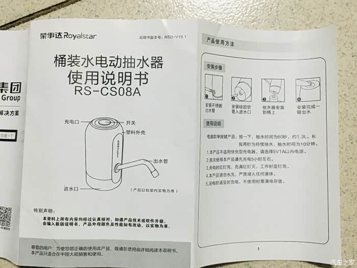 优点:10元的价格非常便宜,出水时噪声非常小,便携携带方便,支持充电宝充电,充电后可以抽5桶水。