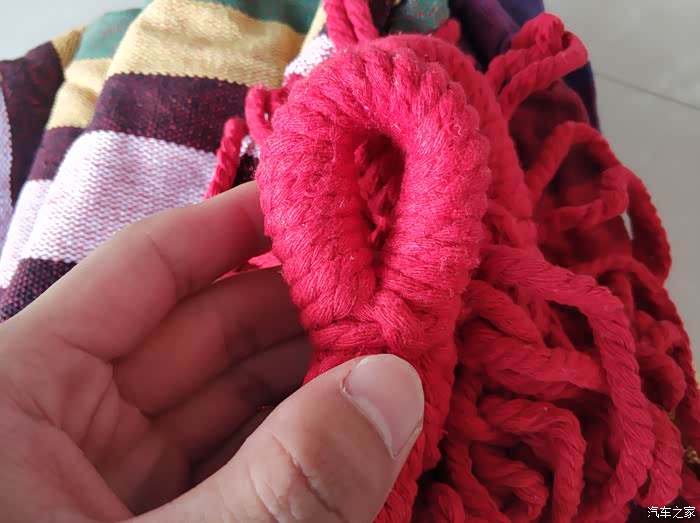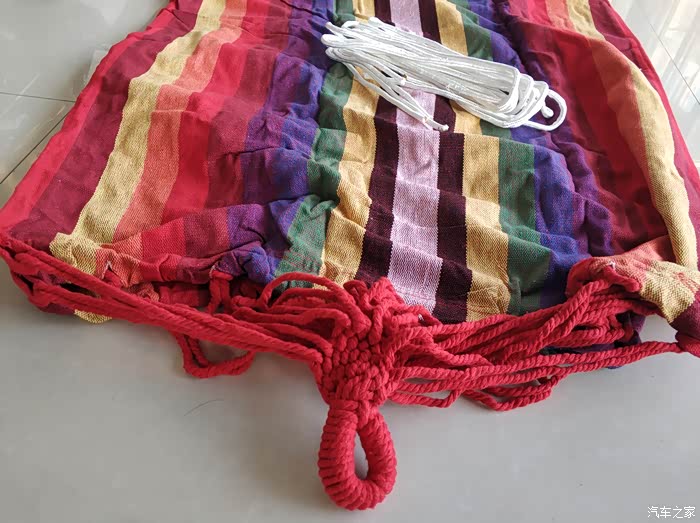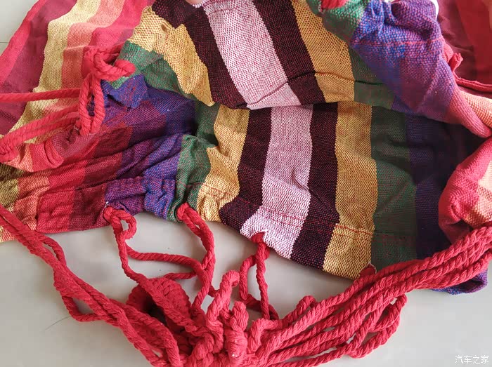首先外观方面,既然是彩虹吊床,配色当然是彩虹色,躺在上面就像躺在彩虹上面,是不是有点童话气息哈哈。单人吊床规格为190*80cm,一个人躺上去还是比较宽敞的。