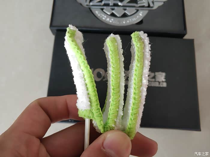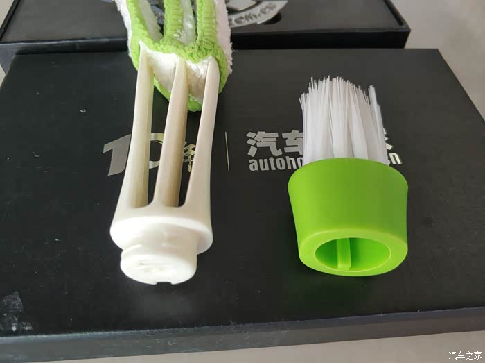 首先第一眼看到它,还真不知道它是干什么用的,一面是三个有弧度的小爪子,另一面是一个小刷子,造型挺独特。小刷子的一面可以单独拆下来。刷子的毛软硬适中,清理一些内饰死角应该非常好用。三个小爪子上面的外套是可以摘掉的,非常的方便清洗。外套的材质也用的是类似毛圈布料,能够有效锁住灰尘,清洁效果还是非常不错的。