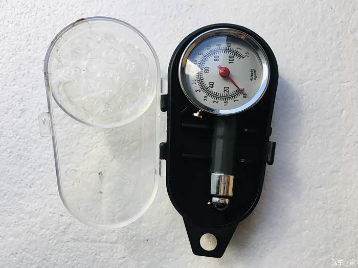 大家好,今天为大家点评一款机械式胎压检测仪表,现在交通工具越来越多,无论自行车摩托车电动车汽车都很有必要备上一个轮胎胎气检测工具,因为轮胎的气压长期偏低会造成轮胎橡胶早期老化,夏季气压偏高也容易造成爆胎,给我们的行车安全带来很大的隐患。这款胎压表是机械式的,也就是我们说的指针读数,我个人还是认为这种机械式的数据更为精准,当然数字显示的更容易读数,各有各的好处。今天我拿到的这款品牌是车太太,产品带有一个塑料硬壳收纳盒,看起来不怎么上眼,但收纳起来还是很方便的。这款胎压表拿在上里很有份量,整个表体都采用了金属材质,上面带有一个小按钮,这个小按钮是测量完清零用的。检测头部还带有一个小突起,这个是干什么用的呢?这个是用来泄压用的,有时我们会气压充高了怎么办,用这个小突起顶住气门嘴里的小金属就可以放气。好了我们一起来看一下这款产品的细节做的如何。