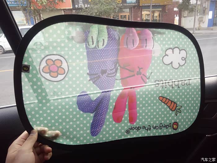 优缺点分享:车辆侧车窗遮阳挡,它的设计非常简单,外观造型卡通,可以适用于各种各样的车辆。安装起来非常的简单,仅需要将光滑的一面,固定在玻璃上,即可完成吸附。布署便捷,遮光效果好,非常的实用。遮阳挡的设计还是有些小了,几乎无法笼罩整个车窗,有待改进。希望能做出一些,可以专车专用的侧车窗遮阳挡,效果更好,更加定制化。