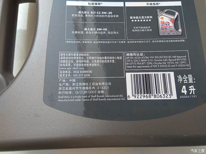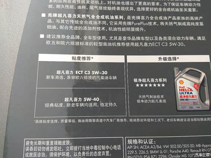 机油被称为汽车的血液,在发动机工作过程中,机油被输送到凸轮轴、活塞、曲轴等部位进行润滑,减小摩擦减轻磨损。机油还有冷却降温、密封防漏、清洗清洁、防锈防蚀、减震缓冲等作用。机油有使用期限,到期了就需要更换,机油,学名叫发动机润滑油。顾名思义,是给发动机润滑用的,如果说发动机是汽车的心脏,那么机油就是心脏中的血液,非常重要。如果发动机缺少机油,或者机油常年不换,会导致发动机损伤,甚至报废。所以说,机油品质十分关键,好的机油能起到让发动机“延年益寿”的作用。本次带来的是壳牌超凡喜力润滑油。