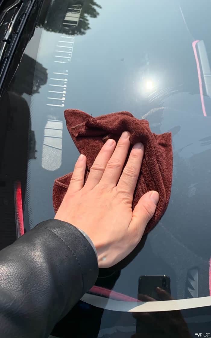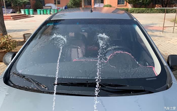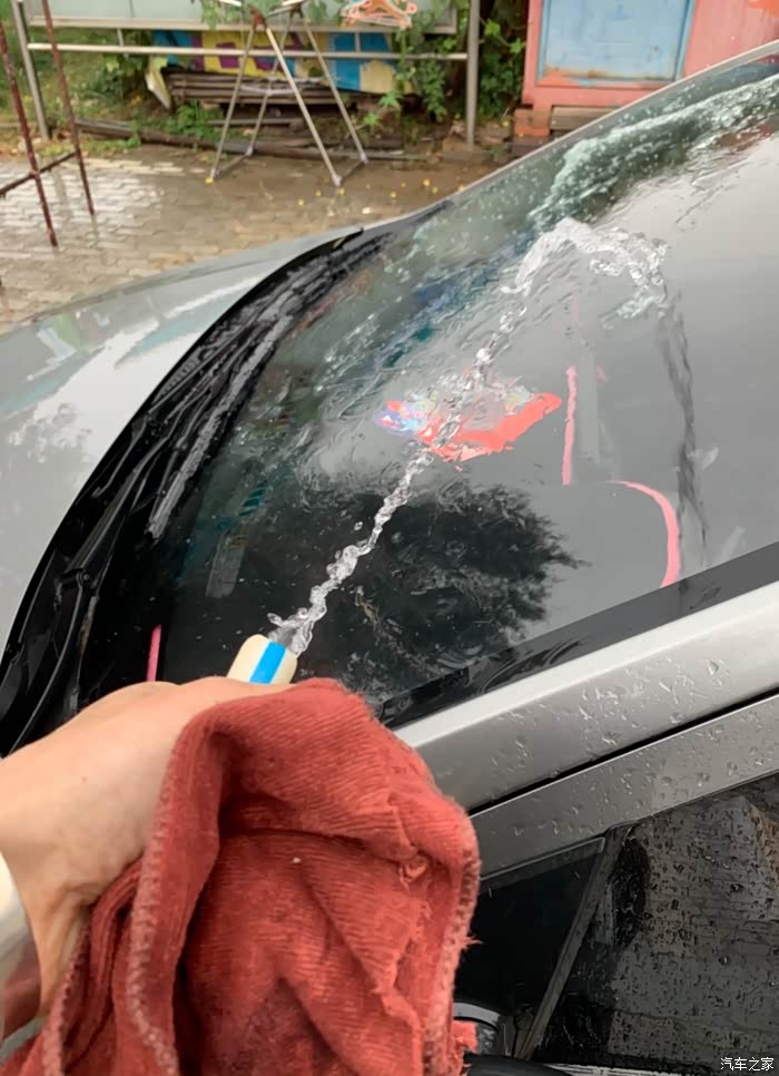 我用清水冲洗清洗干净方便后期打磨挡风玻璃时灰尘对玻璃的损伤降低到最小。