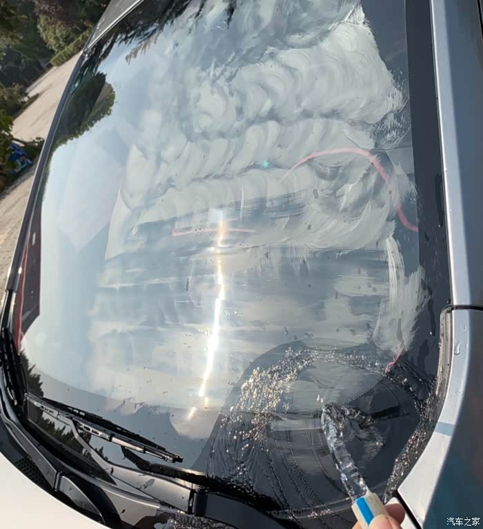 洗过的挡风玻璃看似很干净其实上面附着了很多小油点。
