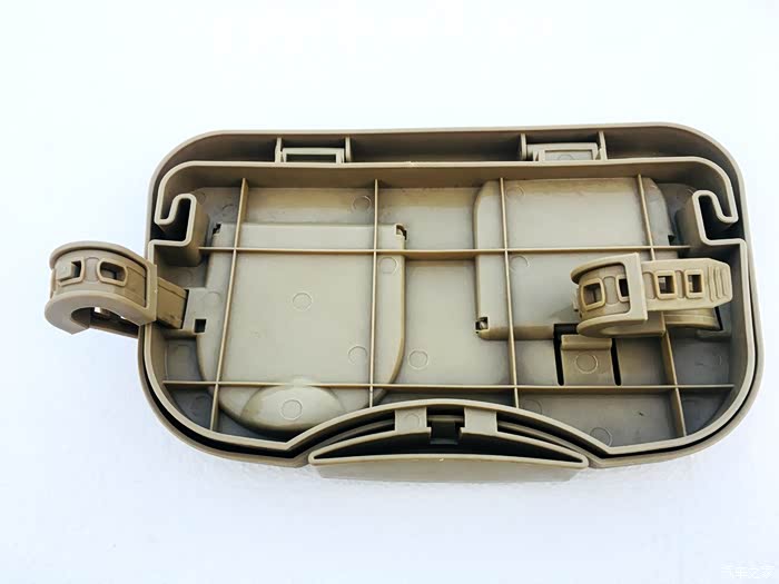 虚盘的背面,我选择了这款米色的,还有一款是黑色的,大家可以根据自己的爱车内饰来选择。背面看起来很乱,其实这是加固筋,这样可以保护产品的结构稳定性。