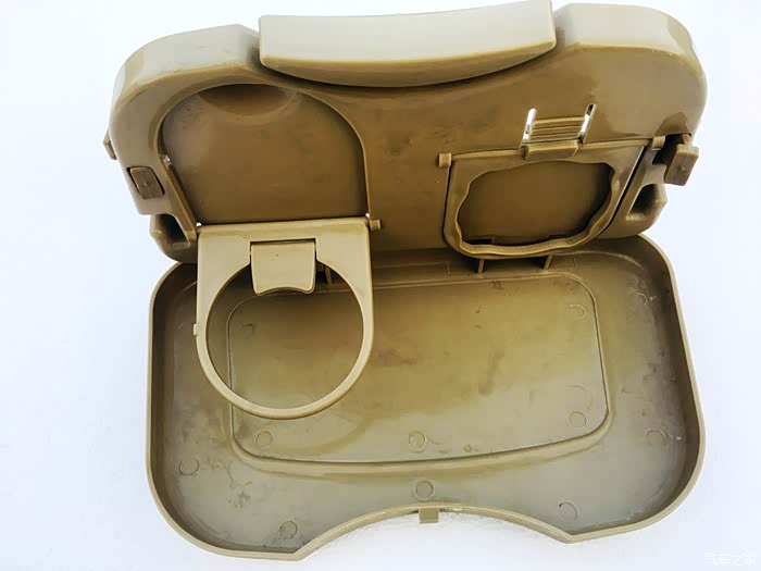 大家好,今天给大家带来一款车内多功能水杯架饮料架,平时开车出门水杯没地儿放,点个零食扔的满后排都是,又脏又乱,选择一款车用多功能餐盘就可以完美解决。这款车载餐盘是米色的,产品重量247克,材质为高质量PP,它不仅是水杯架和餐盘,而且侧面还带有挂钩设计,挂一些汤汤水水的非常不错。有2个杯架,低杯架直径为70MM,高杯架直径为68MM,可以满足不同的需求。打开方便,只要轻轻一推盘顶便可以轻松打开,收纳方便,一张一合,不占车内空间。双杯架设计不用时可以随时收起,不影响餐盘摆放食物。