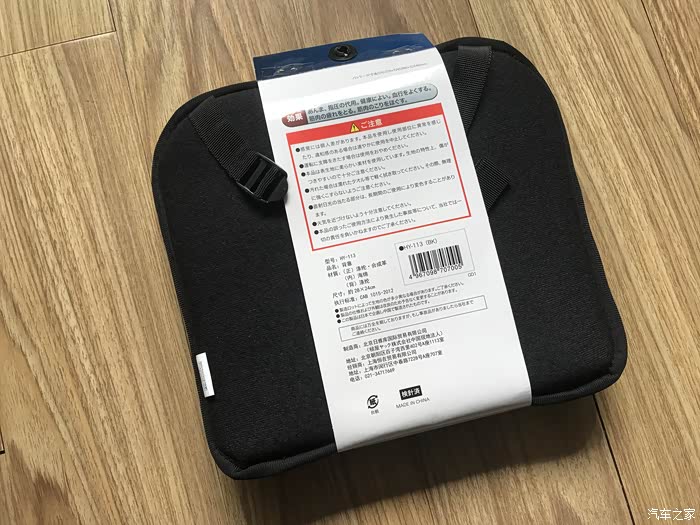 背面是柔软材质以便贴合汽车座椅,顶端的背带可以挂在座椅头正双立柱后方