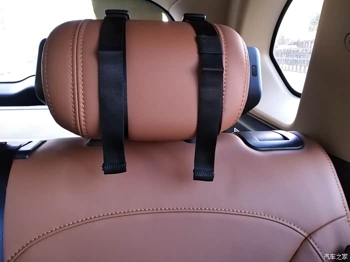 考虑的挺到位的,皮革件把绑带包在里面,不影响后排头枕的使用舒适度。