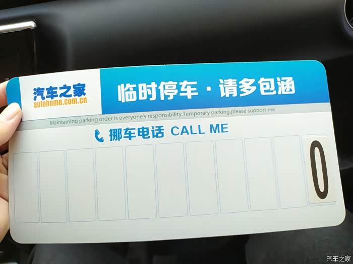 这两件挪车牌我不了解那一款是先出的,但感觉这一款好像设计更简单一些,因为外观和包装感觉稍微更精美一些。这款挪车牌设计风格上来说跟上一款基本相似,还是经典的汽车之家经典颜色搭配,蓝色与白色混合,主体设计简单大方,醒目的汽车之家和网址符号,非常有提示效果以及广告效应,挪车牌带有临时停靠请多关照的提示语以及英文翻译版本。电话号码张贴位置都已经做了标记,使用时候只需要将电话号码从左到右依次贴入接口完成操作,使用起来非常方便。