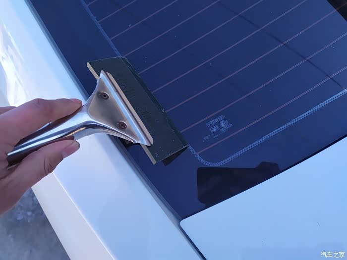 当然这件装备除了用来除霜,还有就是用来除掉冬天落在车身上的雪了,方法 当然跟除霜是一样的。所说这件装备的来历吧,其实他最开始的用处不是用来除霜除雪的,而是用来贴膜的,没错,这件装备是当时我车子刚买的时候,店里师傅给贴膜的时候,跟师傅要的,就是窗膜贴上之后,用这件装备刮一下,保证膜能够贴合紧密,后来被我开发出来用在除霜上,同样效果显著,装备比较简单,可以自制的哦。