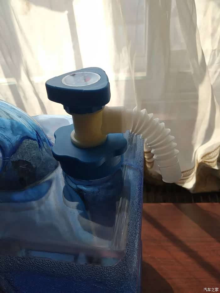 左边蓝色的是阀门,还附带了一个导管,可以拉长和弯折,还是比较方便的。