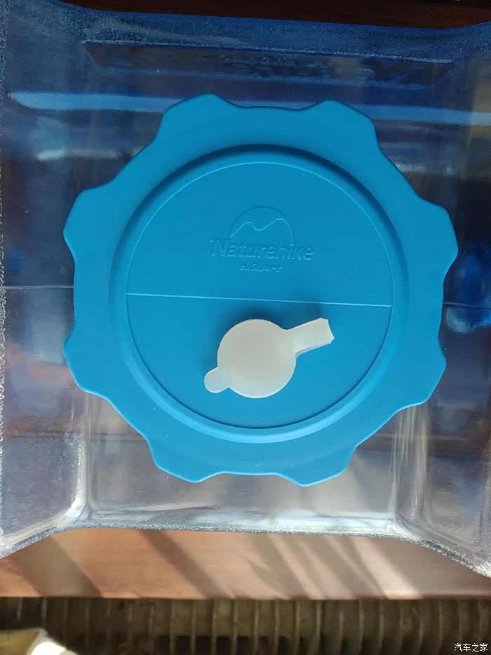 盖子上的橡皮塞打开的效果,可以插入比较细的管子,类似茶具等取水设备可以从这个口取水。