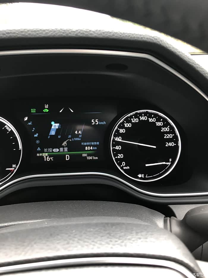 下了高速开始走国道,油表灯亮起显示续航里程16公里,赶紧找了个加油站,按表显示总里程提升到1056公里,我已经很满意了,混动真香