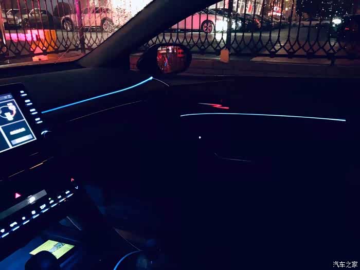 副驾的门板加装效果,夜晚开车时淡淡灯光很惬意