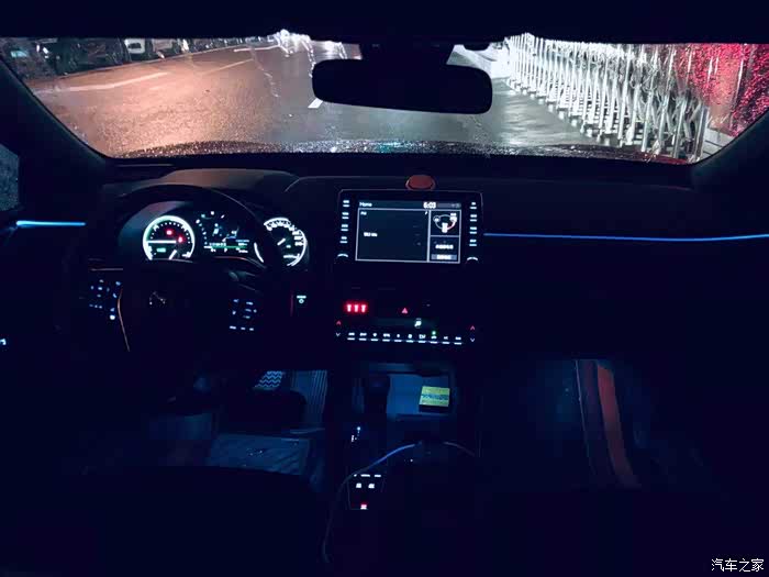 给中控台和四门加装了64色氛围灯,试了各种色调,还是比较中意与原车蓝色灯光搭配的颜色