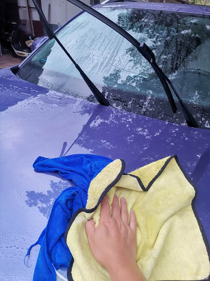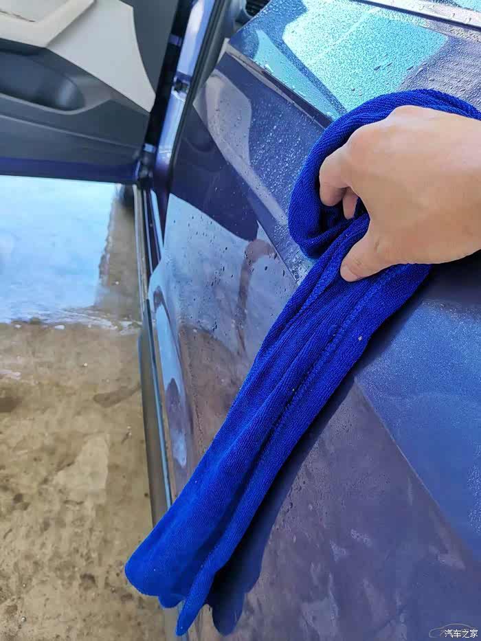 第五步,用高压水枪将车体的泡沫冲洗干净之后,最后一步就是用干毛巾将车身身上的水全部擦干净,这样做的好处是更好的保护车漆。