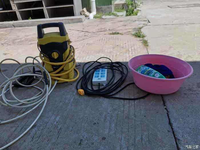 下面我先介绍一下我的洗车工具,高压洗车机、洗车液、洗车毛巾以及泡沫块。