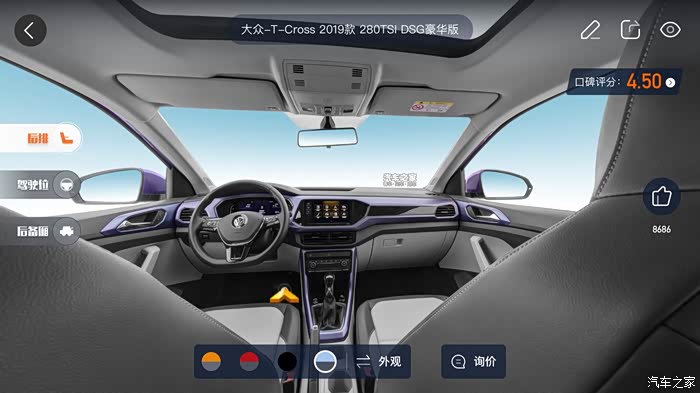 从外观来看,很明显朗逸纯电在燃油版车型的基础上略做了一些调整,换用了幅条加粗的白色中网,并在中网的左侧加入了“e-LAVIDA”标识。此外前包围的两侧也由C形的日行灯取代了前雾灯。