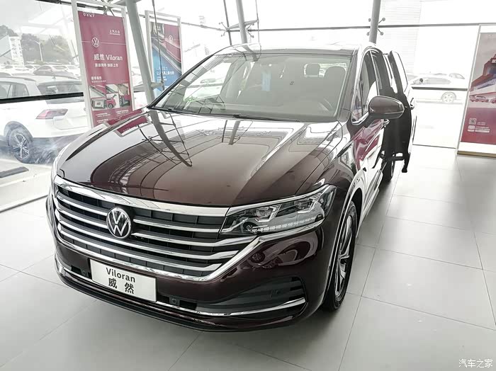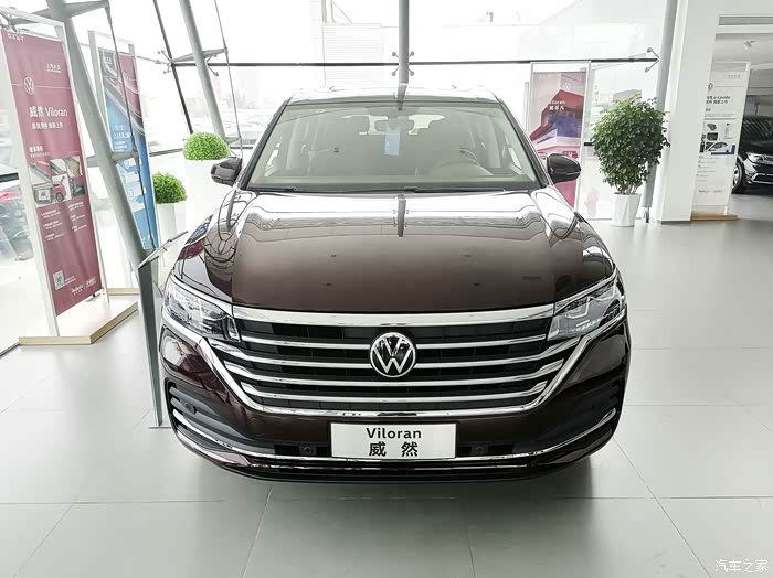 从这个角度来看,威然大气的前脸更明显了,扁平化的车标比以前大了不少,而且前脸倒梯形的外观搭配镀铬饰条更显得漂亮和大气。我看的这个车是紫色的车,配置也比较高。