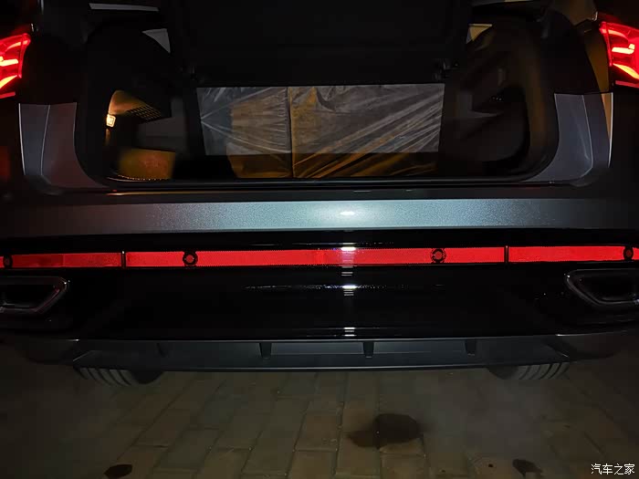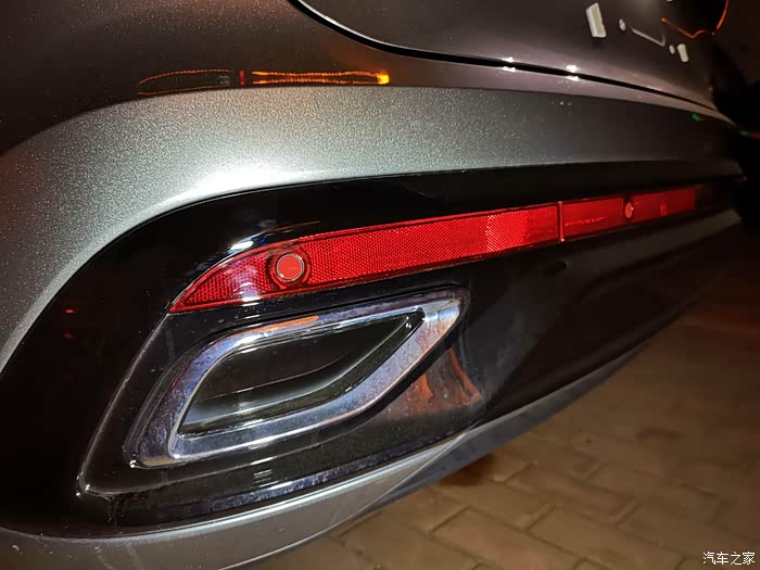 四颗后倒车雷达探头隐藏在了尾部反光条里,设计很用心。