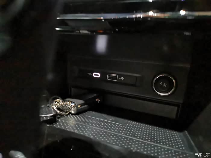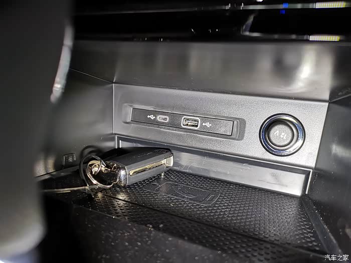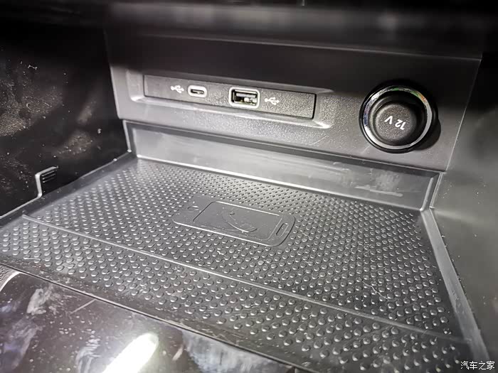 空调面板下方储物槽也可以说它是手机槽,集成了type-c、usb、12V电源接口各一个,另外还有手机无线充电功能,如果手机支持的话还是很方便的。