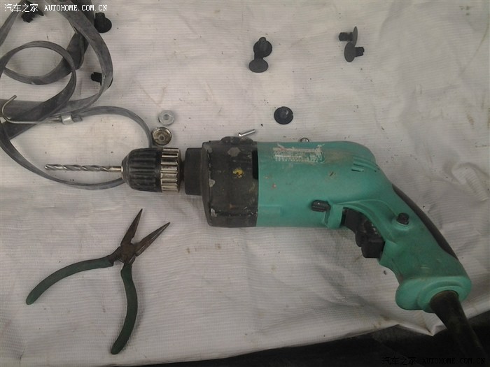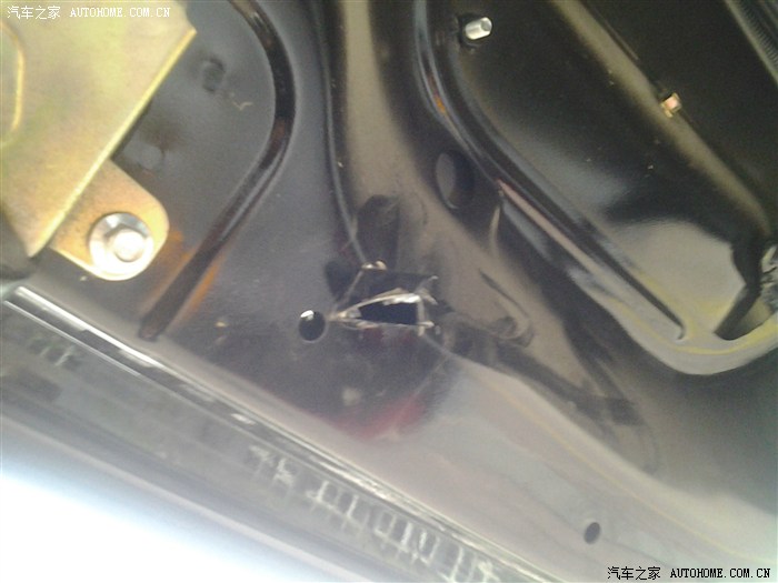 2、下面两个孔没有旋的槽,所以将车用切割机打个大一点的洞来旋螺母。我只旋了螺母,没有用缓冲垫片,目前先这样,应该不会容易丢,如果会丢,再弄。弄弄个洞有点心痛。哈哈。。。