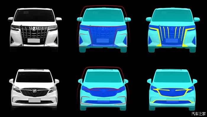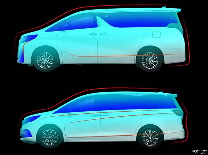 以业界标杆埃尔法为例,整车轮廓线条硬朗,同时运用大量镀铬装饰件强化特征,提升视觉冲击与体量感。反观GL8,整体无论是型面还是线条都更加柔和顺滑。