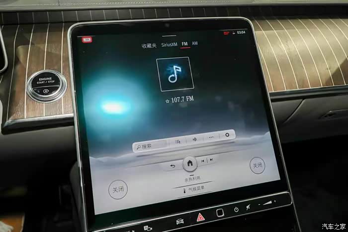 能够感受到这款车在内饰的设计也有着非常亮眼的配置。在中控台处,有着木纹装饰板,这处装饰板的上方有着白色线条排列,和车门处的饰板形成了环抱型结构。在中控台的中上方区域是一处并排的回形空调出风口,呈现出了金属配色。