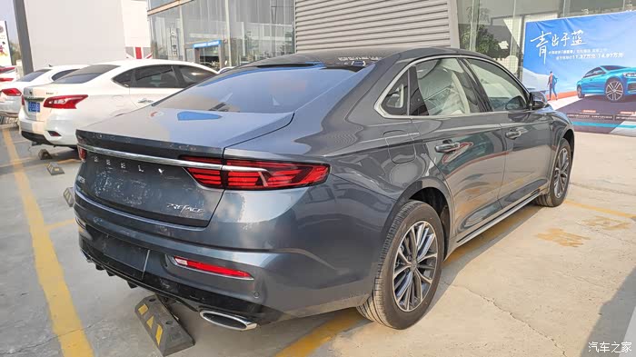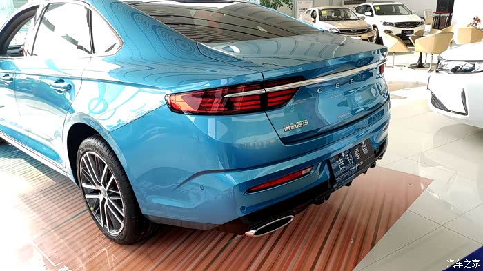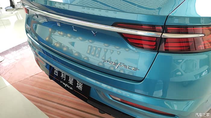 溜背式的车尾边缘设计成了稍微突出的边缘,但是又有点内收的边,修长的镀铬条一直嵌入到车尾灯内,不得不说吉利的设计现在越来越有国际范了。