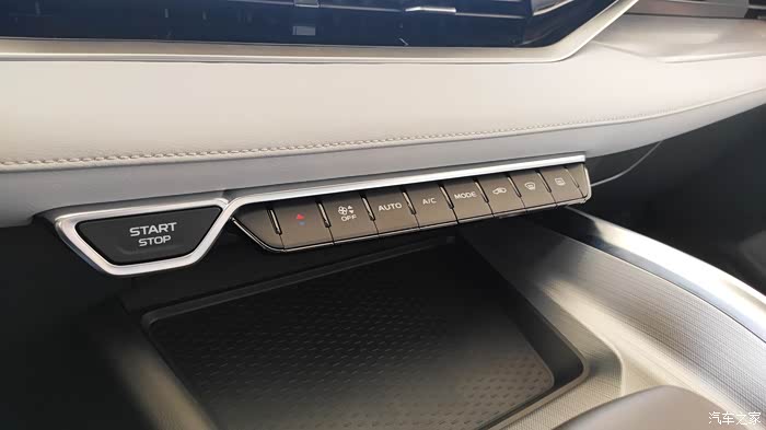 一键启动按钮和空调操控键并排设计在一起,易于操作,又非常简洁。