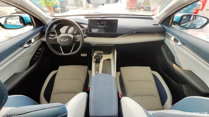 查询了网上的宣传资料得知,星瑞的内饰采用了“时空交叠座舱”的设计语言,白色、淡蓝色的配色很有太空驾驶舱内的感觉,整洁、清新。