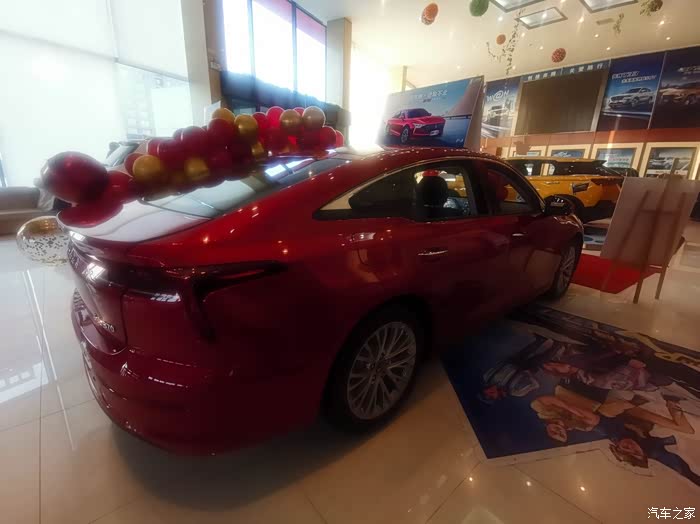 一进屋,新B70停在中央,果然惊艳,对于红色控的我来说甚是喜欢,车身上油漆也bling,bling的(后来才知道是珠光漆)。